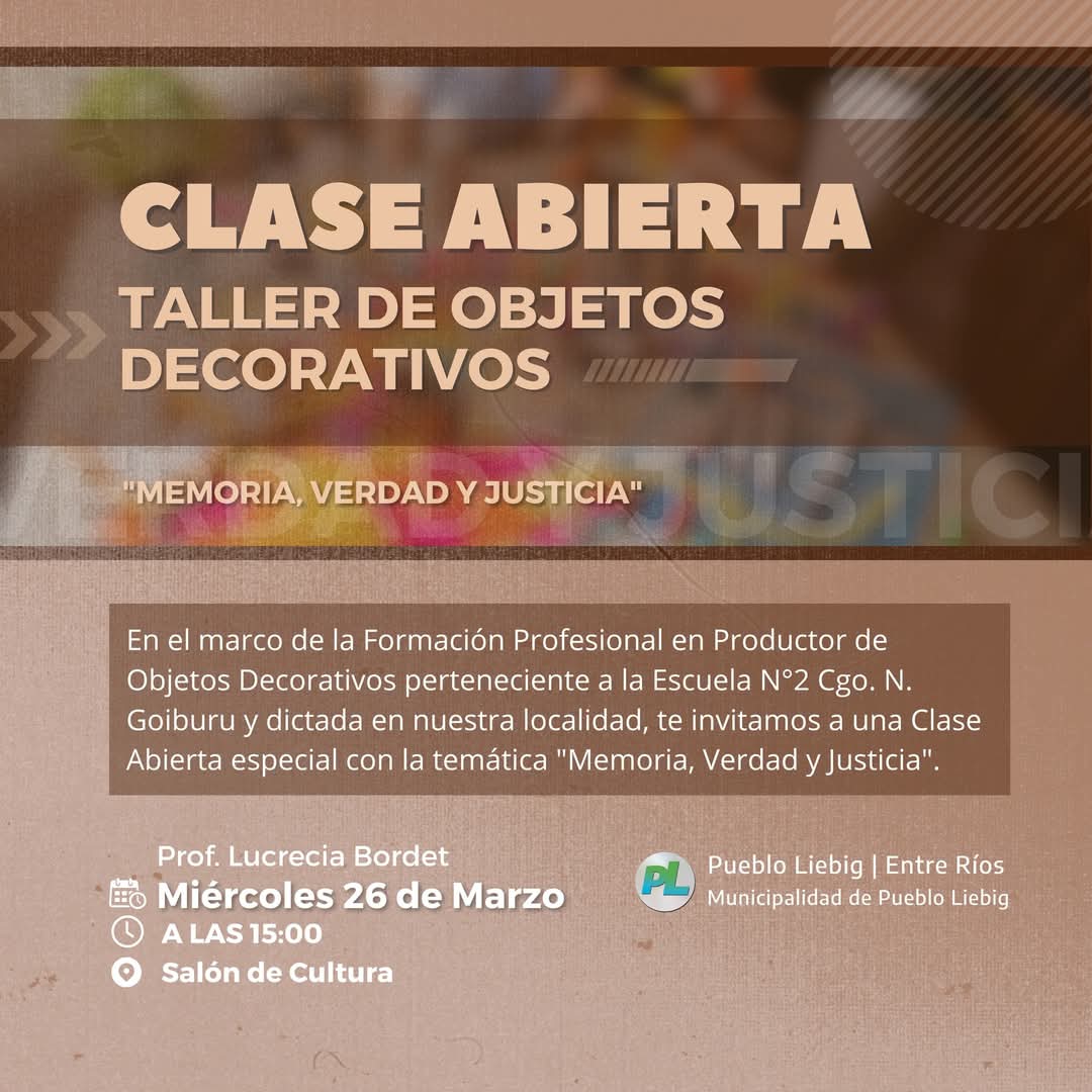 Read moreEn el marco de la Formación Profesional en Productor de Objetos Decorativos perteneciente a la Escuela N°2 Cgo. N. Goiburu y dictada en nuestra localidad, te invitamos a...