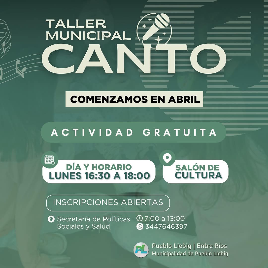 Read moreSi te gusta cantar y querés compartir la música en grupo, te invitamos a participar de nuestro Taller de Canto grupal, dirigido por la profesora Mariela Ibalo. Día:...
