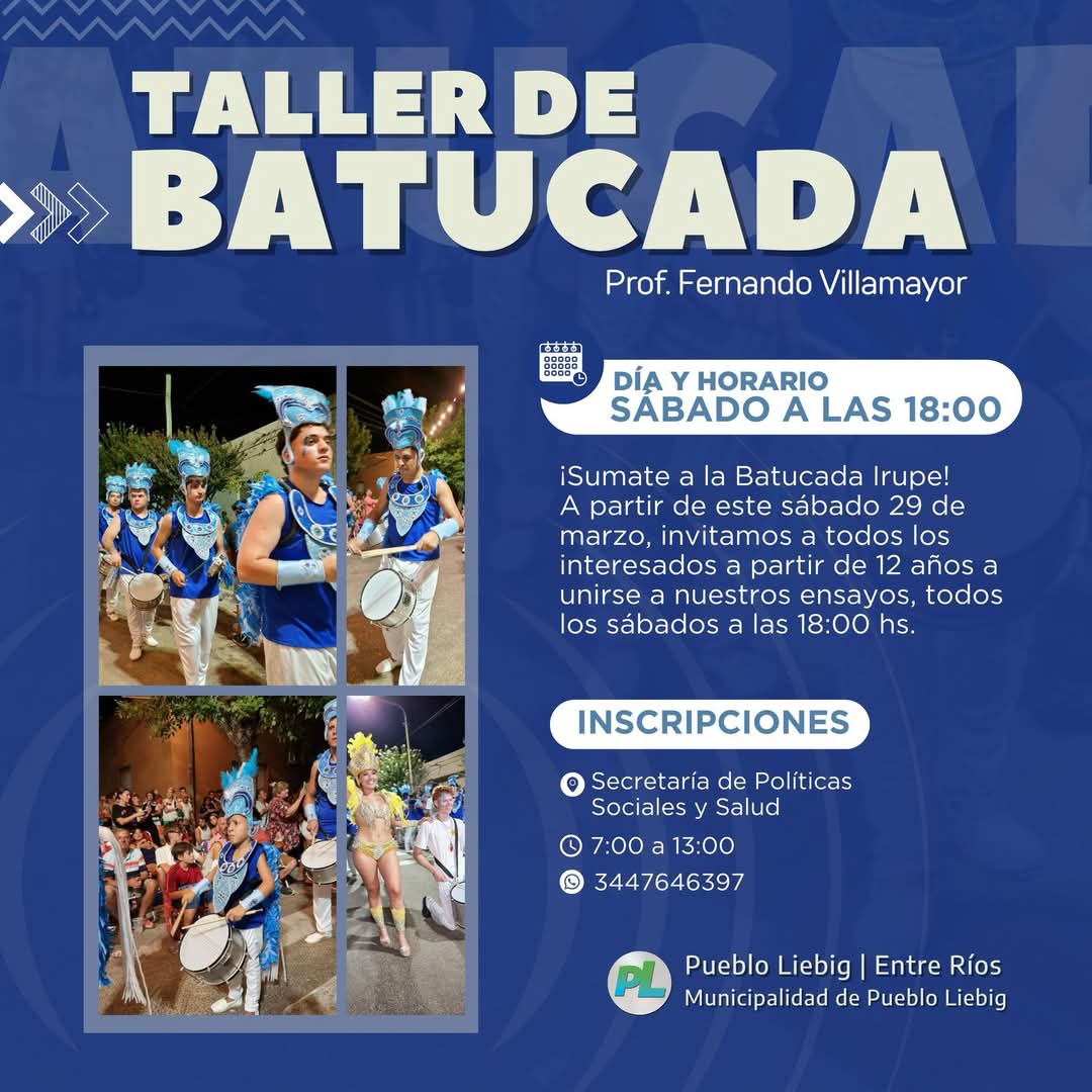 Read moreA partir del sábado 29 de marzo a las 18 hs, el Profesor Fernando Villamayor retoma el Taller de Batucada, una oportunidad única para aprender ritmos y ser...