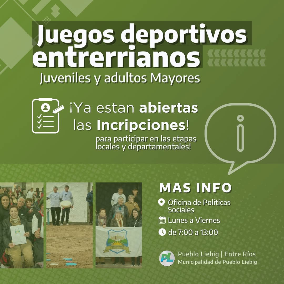Read more¡Ya están abiertas las inscripciones para participar en las etapas locales y departamentales! Juegos deportivos Entrerrianos juveniles. Disciplinas: * Atletismo * Hockey (femenino y masculino) * Vóley y...
